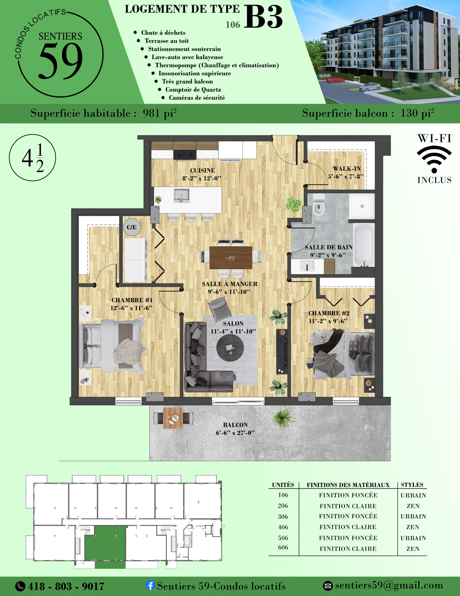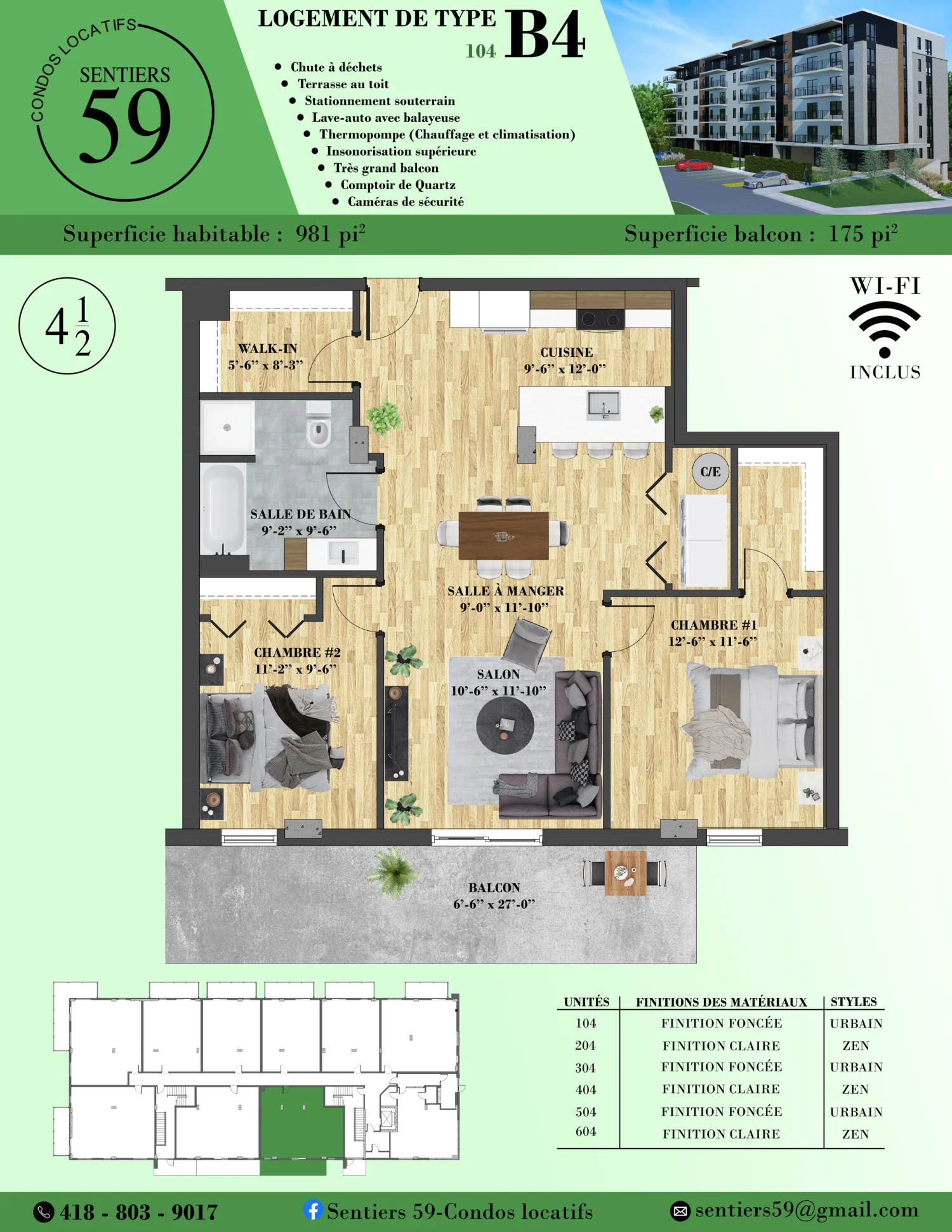 - Thermopompe dans chaque logement (climatise et chauffe)