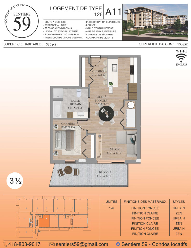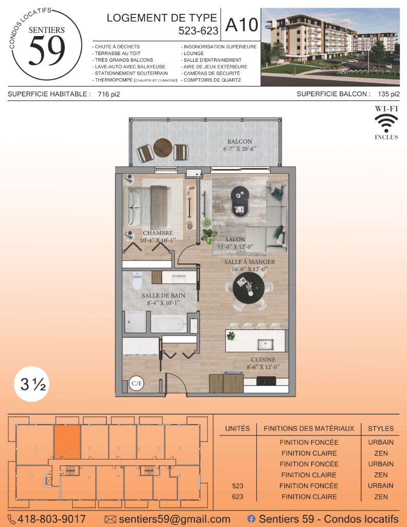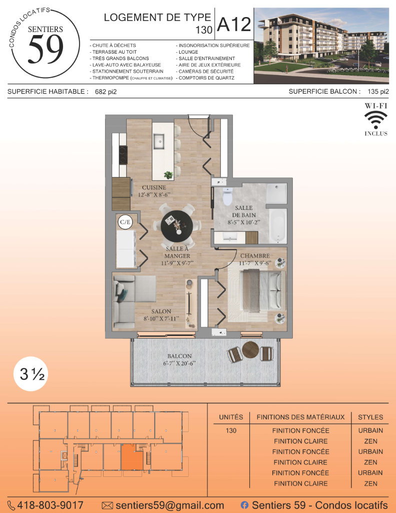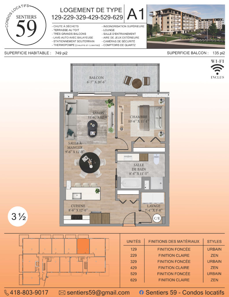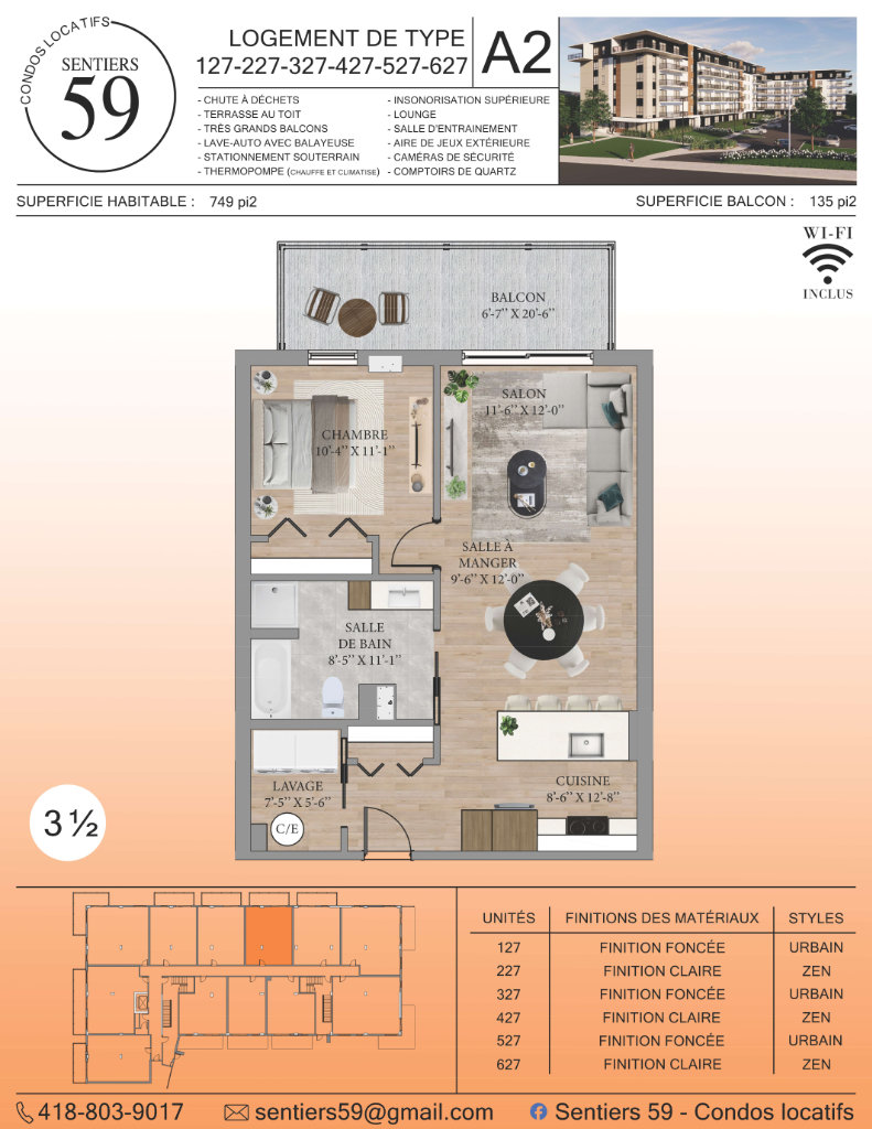 Utilisez le sélecteur d’étages pour naviguer à travers nos multiples appartements. Vous y verrez la description, les plans, les prix et la disponibilité de chaque appartement.